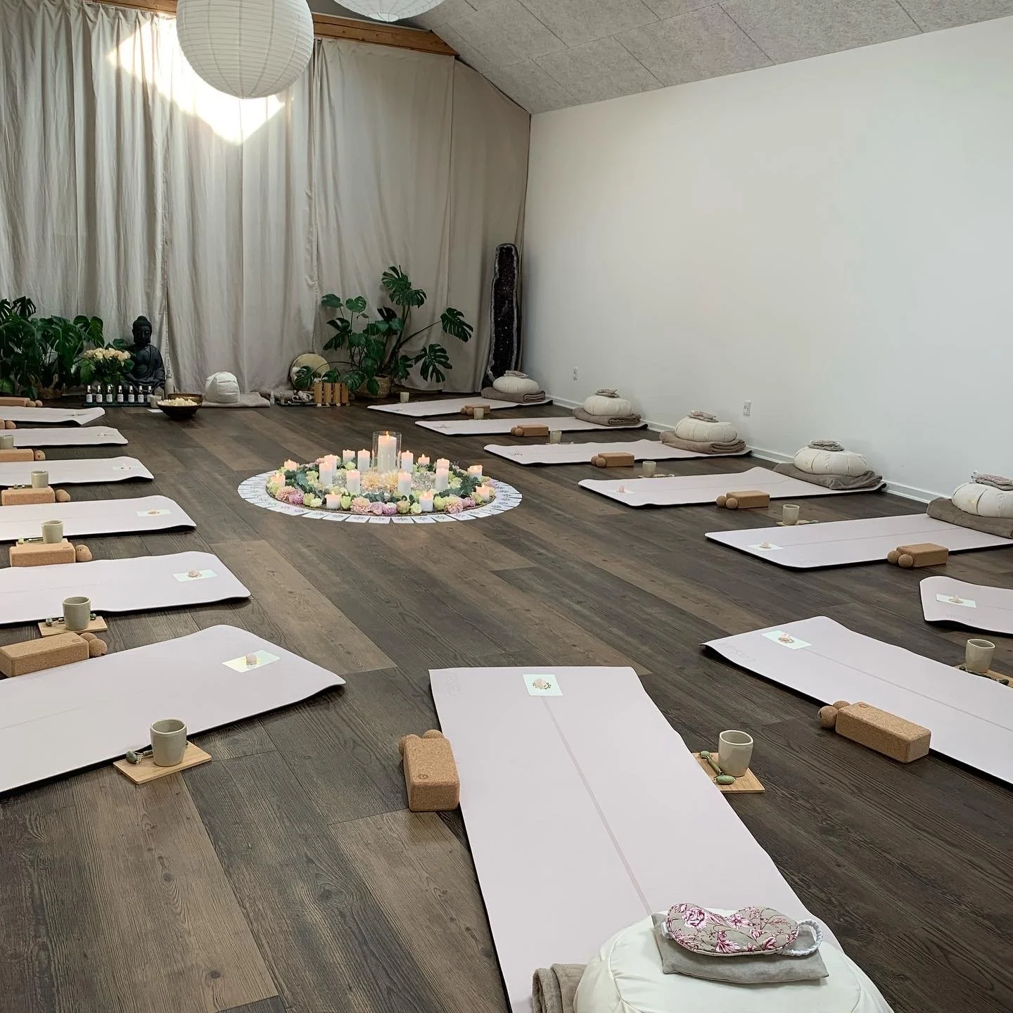 Der vil være en yogamåtte, meditationspude, tæppe og øjenpude.